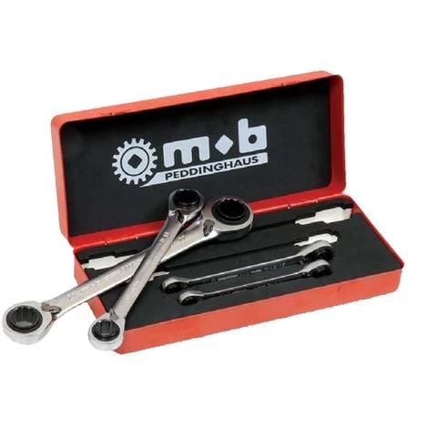 Mob outillage vous propose la seule clĂ© mixte à cliquet qui puisse avoir 4 dimensions les plus utilisĂ©es sur le mĂŞme outil Ă main, sans embouts et sans effort. 16 dimensions en seulement 4 clĂ©s, c’est la clĂ© rĂ©volutionnaire de chez MOB OUTILLAGE. 8-10-12-13 mm  9-11-14-15 mm  16-17-18-19 mm  20-21-22-24 mm 4 ClĂ©s 4×4 = 16 dimensions MOB Outillage PERFORMANCE : L’angle de reprise de 5° assure une reprise très performante dans les espaces rĂ©duits : rapiditĂ© & accessibilitĂ©. RĂ©versibilitĂ© pour changement rapide de sens : productivitĂ© optimisĂ©e. SÉCURITÉ : 4 inverseurs intĂ©grĂ©s dans la clĂ© : pas de risque d’inversion accidentelle. FINITION : ChromĂ©e et polie satinĂ©e. Dimension du coffret mĂ©tal avec mousse bicolore : 300x125x60 mm Marque et fabrication française Garantie sans limite de temps