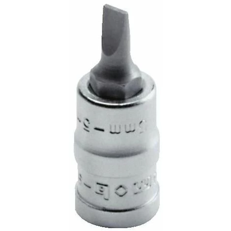 Embout monté dans une douille. ERGONOMIE : La manipulation des douilles est rendue facile grâce à un épaulement extérieur prévu pour la prise. Pour trouver rapidement la douille souhaitée sa dimension est marquée sur tout le pourtour. La suppression des angles vifs des carrés augmente leur résistance. Forgé tourné. Douille en acier Chrome-Vanadium, le meilleur matériau pour la fabrication de douilles et accessoires. Embout en acier au Silicium S2.-ExD : 0.6X4
