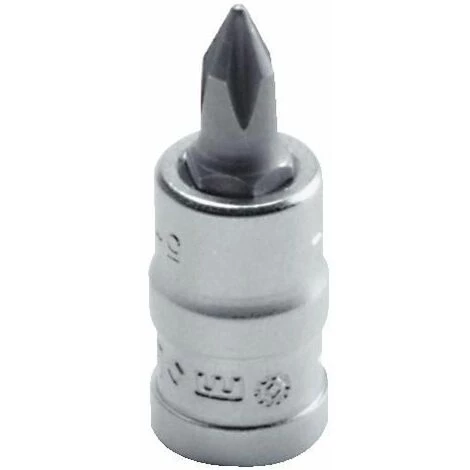 Embout monté dans une douille. ERGONOMIE : La manipulation des douilles est rendue facile grâce à un épaulement extérieur prévu pour la prise. Pour trouver rapidement la douille souhaitée sa dimension est marquée sur tout le pourtour. Epaulement extérieur pour une meilleure prise. La suppression des angles vifs des carrés augmente leur résistance. Douille en acier Chrome-Vanadium, le meilleur matériau pour la fabrication de douilles et accessoires. Embout en acier au Silicium S2.-Caractéristiques : PH2