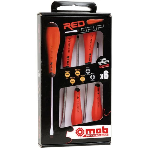 Force – prĂ©cision ‘“ rapiditĂ© : Combinaison de 2 matières : NĂ©oprène et polypropylène. Un couple très puissant grâce Ă Â la forme hexalobĂ©e. Les 6 lobes calent les doigts naturellement lors des serrages puissants. QualitĂ© : Lame surmoulĂ©e : indĂ©manchable. RapiditĂ© : Amincissement du corps du tournevis pour le serrage rapide. Les avantages d’un tournevis Ă Â corps rond : Forme adaptĂ©e Ă Â votre main. Mouvement de reprise naturel. Les avantages d’un tournevis Ă Â corps carrĂ© ou triangulaire : DĂ©veloppement d’un couple puissant sans effort de serrage exagĂ©rĂ©. PosĂ©, ne roule pas. Pratique : Grande visibilitĂ© de la couleur rouge : impossible Ă Â perdre. NĂ©oprène nouvelle gĂ©nĂ©ration : facile Ă Â nettoyer. TĂŞte sphĂ©rique douce : Forme adaptĂ©e Ă Â la poussĂ©e. Marquage avec code couleur pour un repĂ©rage facile. Une qualitĂ© d’acier pour chaque empreinte : Pour les tournevis Ă Â fente, les tournevis Ă Â empreinte de type Phillips et Pozidriv : acier alliĂ© au chrome et au vanadium. Pour les tournevis adaptĂ©s aux empreintes de type Torx : acier alliĂ© au manganèse et au silicium adaptĂ© uniquement aux usages de ce type d’empreinte. Marquage : Marquage par tampographie de couleur sur le dessus du manche. Double marquage de la dimension : tampographie latĂ©rale sur le manche et marquage laser sur la lame. Finition : Lame de finition chromĂ©e satinĂ©e. Empreinte phosphatĂ©e pour une meilleure adhĂ©rence.