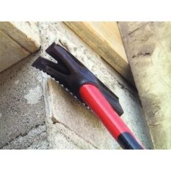 Martellerie de bâtimentMarteau de coffreur racleur 380 mm TĂŞte en acier forgĂ© en carbone. Zone d’attaque : un cĂ´tĂ© dentĂ© pour le raclage des surfaces granuleuses, un cĂ´tĂ© lisse pour le raclage des surfaces plus fines. Zone d’amorce : pour arracher Fabrication Française