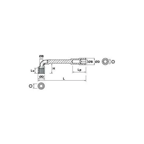 - Clé débouchée : le dépassement de la tige filetée ne gêne pas le serrage.