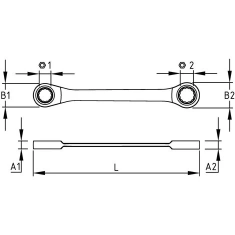 - 2 dimensions sur 1 clé, cliquet pour une plus grande rapidité, clé extra-plate.