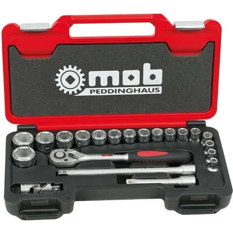 COFFRET PLASTIQUE 1/2” 27 PIĂCES 6 PANS CLIQUET POIRE – GAMME CLIQUETS ET DOUILLES – MOBÂ