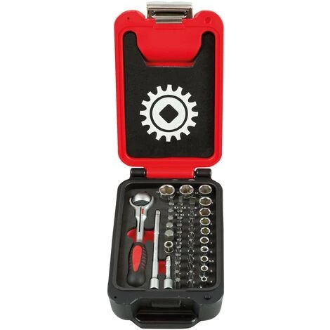COFFRET BOX 1/4” 46 PIĂCES 6 PANS CLIQUET TĂTE ROTATIVE – GAMME CLIQUETS ET DOUILLES – MOB