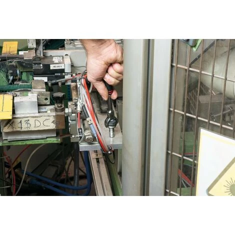 TĂȘte rotative librement orientable :- Utilisable comme un tournevis classique en position 0° – Utile lorsque la situation nĂ©cessite un dĂ©gagement – Utilisable en cliquet classique Ă 90°. Denture fine du cliquet 100 dents angle de reprise 3,6°. Inversion du sens de serrage sur toute la circonfĂ©rence de la tĂȘte.