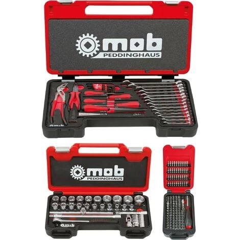 1 coffret Fusion Box Cargo : 14 clĂ©s mixtes: 7-8-10-11-12-13-14-15-16-17-18-19-22-24 mm // 5 tournevis: 3 fentes: 3,5×75- 5,5×125-6,5×150 mm + 2 Phillips: PH1-PH2 // 1 jeu de 9 clĂ©s mâles: 1,5-2-2,5-3-4-5-6-8-10mm // 1 pince universelle 160 mm // 1 pince multiprise superposĂ©e 240 mm // 1 marteau rivoir Carbon 30 mm // BOX 33 pièces ÂĽ ½ : 1/4’’ : 10 douilles : 4/5/6/7/8/9/10/11/12/13 mm // 1 cliquet rond // 1 cardan // 1 rallonge : 50 mm // 1 rallonge : 140 mm clik’n hold //1/2’’ : 15 douilles : 10/11/12/13/14/16/17/18/19/21/22/24/27/30/32 mm // 1 cliquet rond // 1 cardan // 1 rallonge : 125 mm / 1 rallonge : 280 mm clik’n hold // BOX VISSAGE 115 pièces : 1 poignĂ©e tournevis // 1 porte-outils magnĂ©tique // 1 douille porte-embouts // 112 embouts : 7 Fentes : 3,5-4-4,5-5,5×2-6,5-8 – 20 Pozidriv : PZ0-PZ1x5- PZ2-x11-PZ3x2-PZ4 – 20 Phillips : PH0x2-PH1x5-PH2x10-PH3x2-PH4 – 25 Torx : T6-T7-T8-T9-T10x2-T15x2-T20x8-T25x2-T27-T30x3-T40x2-T50 – 5 Tamper Torx : TT10-TT15-TT20-TT30-TT40- – 20 Hexagonaux : H1,5×2-H2x2-H2,5×2-H3x2-H4x3-H5x3 -H6x2-H7-H8x2-H10 – 4 Torqset (4 wing) : 5-6-8-10 – 3 Triwing : 2-3-4 – 4 Spanner : 4-6-8-10 – 4 CarrĂ© : 0-1-2-3