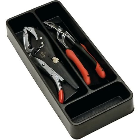 Dans ce module thermoformé de 385 x 165 mm il y a : 1 Pince étaux becs longs 1 Pince multiprise becs effilés bimatière 240 mm.