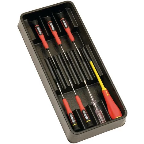 1 module garni : 1 tournevis isolĂ© : 4×100 5 tournevis micro : 2- 2.5- 3- PH1- PH2 1 testeur