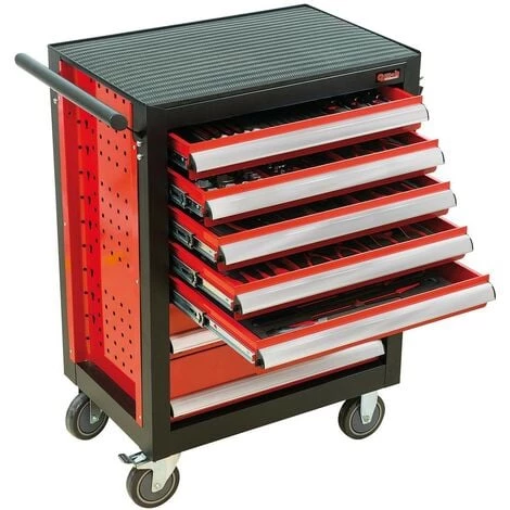 - Condamnation centralisĂ©e des tiroirs – 2 clĂ©s. 2 roues orientables dont 1 Ă frein et 2 roues fixes.