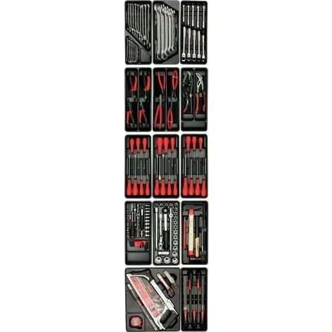 - RĂ©f. 9541 – 38 douilles et accessoires 1/4 : // douilles 6 pans (5,5-6-7-8-9-10-11-12-13-14) // poignĂ©e coulissante de 115 mm // 1 cliquet 1/4 / 1 cardan / 2 rallonges 50 et 125 mm // 13 douilles tournevis (PH1-PH2-PH3-H3-H4-H5-H6-PZ1-PZ2- 0,6×4-1×5,5-1,2×7-1,6×8) // 1 jeu de 9 clĂ©s mâles