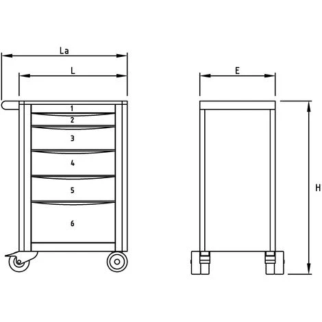 - Verrouillage des tiroirs pour Ă©viter toute ouverture intempestive lors des dĂ©placements – dĂ©verrouillage par simple action de la poignĂ©e.