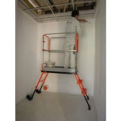- Le passage peut se faire plateforme pliée avec les garde-corps sur l’épaule ou lorsque la plateforme est entièrement montée