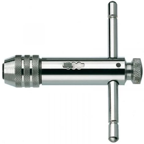 Porte-outils Ă cliquet 4,6-8 mm L 110 mm Mob Outillage :  CaractĂ©ristiques du porte-outils Ă cliquet 4,6-8 mm L 110 mm :  3 positions : fixe, serrage, desserage Broche amovible, s’utilise en T ou en L Mandrin de serrage Ă deux mors Ouverture : 4,6-8 M5 ISO M6-12 110  Utilisation du porte-outils Ă cliquet 4,6-8 mm L 110 mm :  Pratique pour tarauder dans les endroits difficiles d’accès Ă la place d’un tourne Ă gauche classique Sert Ă©galement pour les extracteurs de goujons cassĂ©s ou mĂŞme des embouts Utilisable avec des extracteurs de vis cassĂ©es, des tarauds Utilisable avec des embouts 1/4    Â